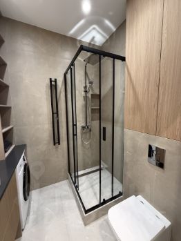 В квартире выполнен качественный дизайнерский ремонт. Квартира полностью готова к проживанию и оснащена всей необходимой мебелью и техникой. Кухня-гостиная совмещает в себе обеденную/гостиную зону и рабочее пространство кухни. Кухонный гарнитур оснащен всей необходимой техникой: варочная панель, духовой шкаф, вытяжка, посудомоечная машина, холодильник.