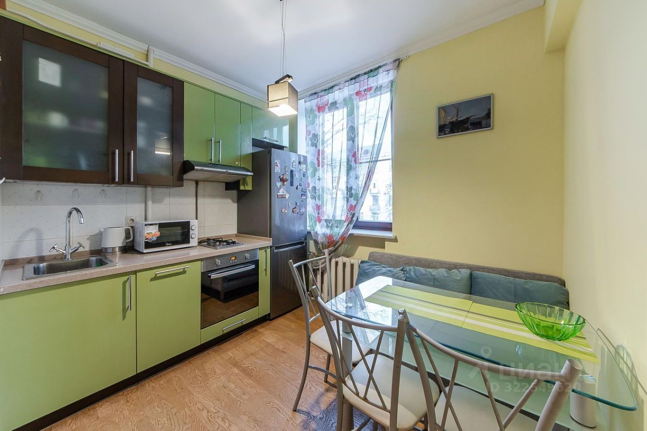 Кухня 8 кв.м. с кухонный гарнитуром, оборудованным посудомоечной машиной, почти новым двухкамерным холодильником, духовым шкафом, СВЧ, вытяжкой, также имеется комфортный диван (отдельное спальное место для гостей).