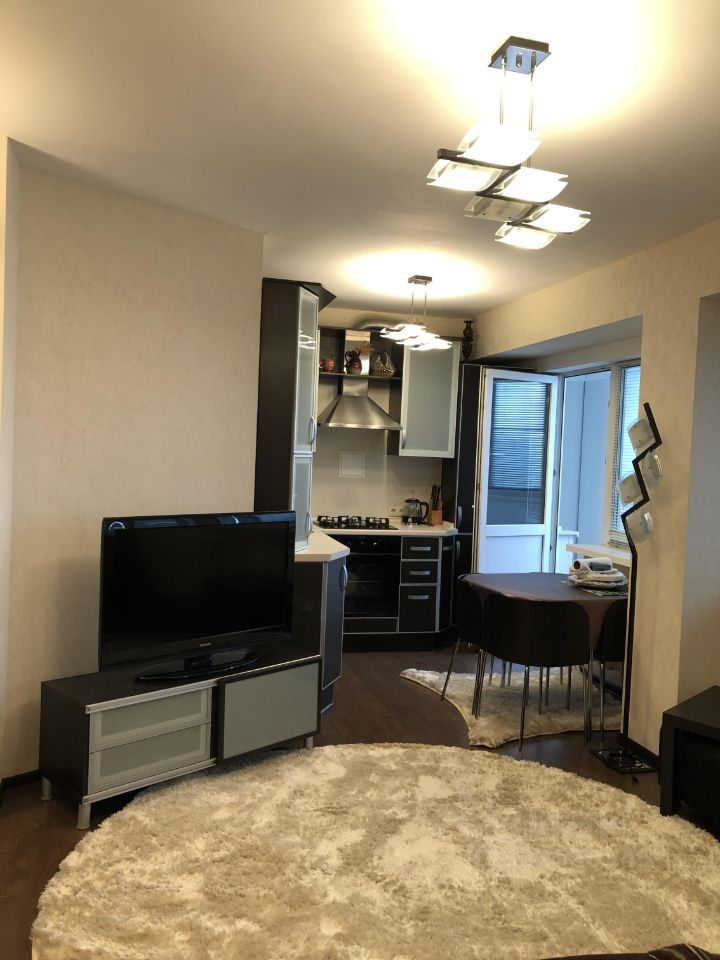В гостиной диван-трансформер, кондиционер, телевизор.