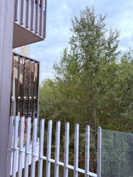 Панорамные окна выходят в тихий двор. Дом расположен радом с зеленым парком.