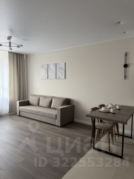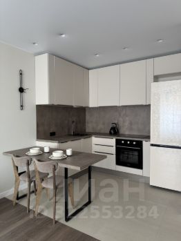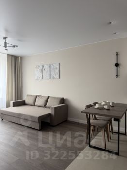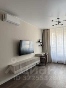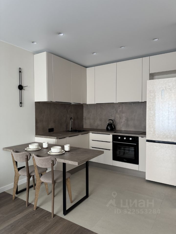 Гостиная, где дышится легко: объединенное пространство для жизни, работы и отдыха. Просторный диван, эргономичный рабочий стол, современная кухня и умный ТВ — идеально для вечеров в одиночестве, с семьей или друзьями.