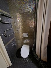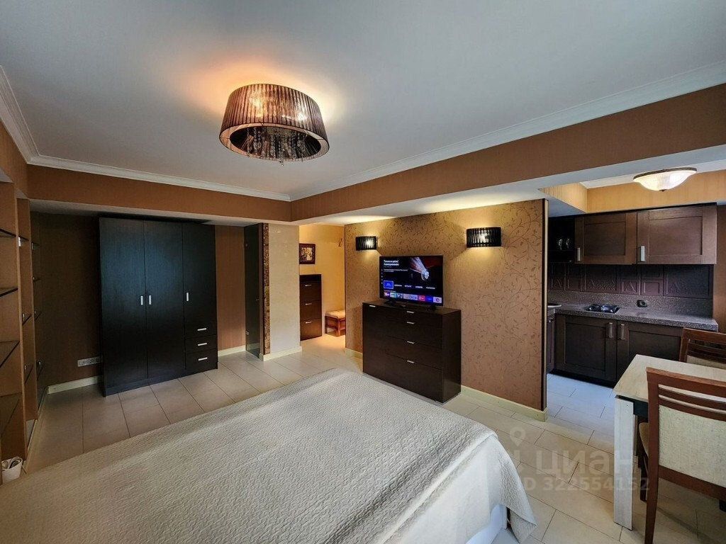 Квартира полностью меблирована: в комнате и на кухне есть вся необходимая мебель. Кухня оборудована современной техникой, включая холодильник, посудомоечную машину и стиральную машину. В гостиной установлен телевизор. Санузел раздельный, в ванной комнате — современная душевая кабина. Подключен интернет, что позволяет всегда оставаться на связи и работать из дома.