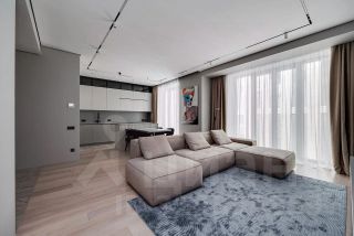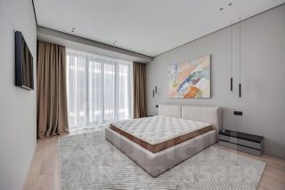 Выполнена отделка по дизайнерскому проекту с применением ценных пород дерева и отделочных материалов, апартамент меблирован и оснащен качественной бытовой техникой. Все окна в квартире в пол.