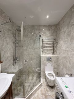 - В квартире два санузла: один с просторной душевой, другой - гостевой, оба с теплым полом.
