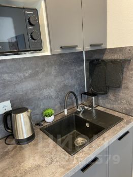 Квартира укомплектована всей необходимой мебелью и бытовой техникой: стиральная машина, холодильник, микроволновая печь, индукционная плита, духовой шкаф, смарт-телевизор, кондиционер, встроенный шкаф, диван со шкафом для хранения вещей, комод из четырёх выдвижных шкафов, прихожая с двухстворчатым шкафом.