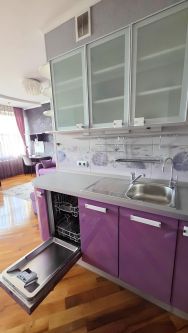 Кухня полностью оборудована современной бытовой техникой, включая холодильник, плиту, микроволновую печь и стиральную машину, посудомоечную машину. Здесь есть все необходимое для приготовления пищи и комфортного быта.