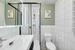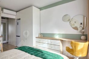 Есть крутые фишки в виде подсветки карниза и еще большого шкафа-зеркала в с/у для косметики)