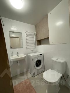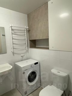 В ванной комнате установлен просторный шкаф для хранения бытовой химии и косметики, зеркало с подсветкой, электрический полотенцесушитель, тихая инвертерная с/м Weissgauff.