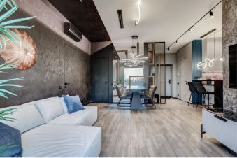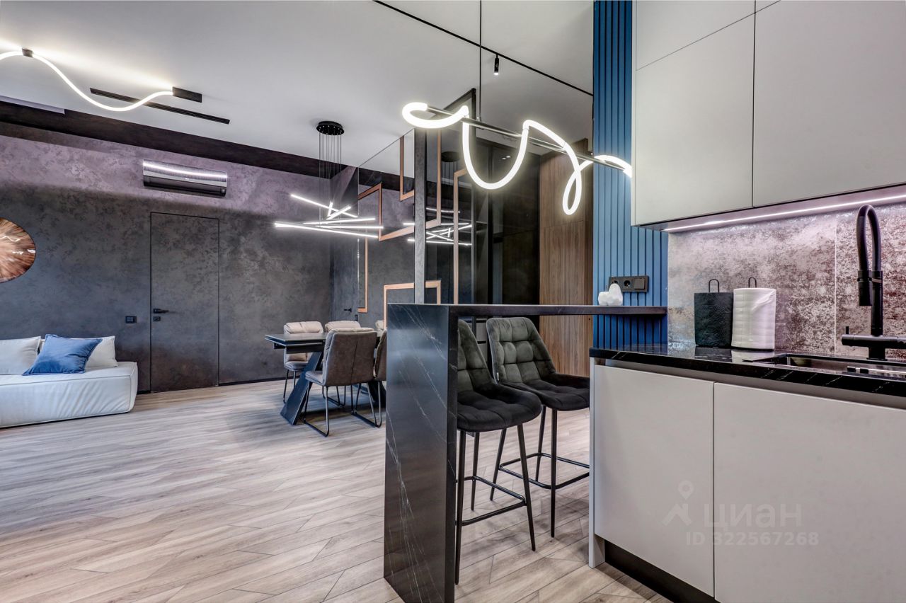 В интерьере квартиры все продумано до мельчайших деталей: автоматическое открытие/закрытие штор и жалюзей, удобные дизайнерские кресла и диваны, двуспальные кровати с ортопедическими матрасами, "умный дом";качественный дорогой свет и много других достоинств, которые можно оценить исключительно на просмотре.