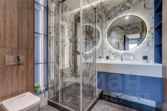 В квартире два совмещённых санузла с душевой кабиной; гардеробная комната, 2 изолированные спальные комнаты, просторная кухня-гостиная. Кондиционеры установлены во всех комнатах. Вся бытовая техника премиального уровня: холодильник, телевизор, стиральная, посудомоечная машины. Подключён интернет.