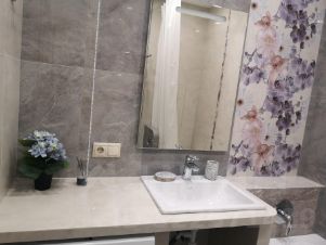 На кухне мебель Мария, посудомойка, варочная панель, вытяжка, микроволновка, духовка, холодильник, телевизор 32", кондиционер. Так же на кухне есть фильтр для воды и чайник.