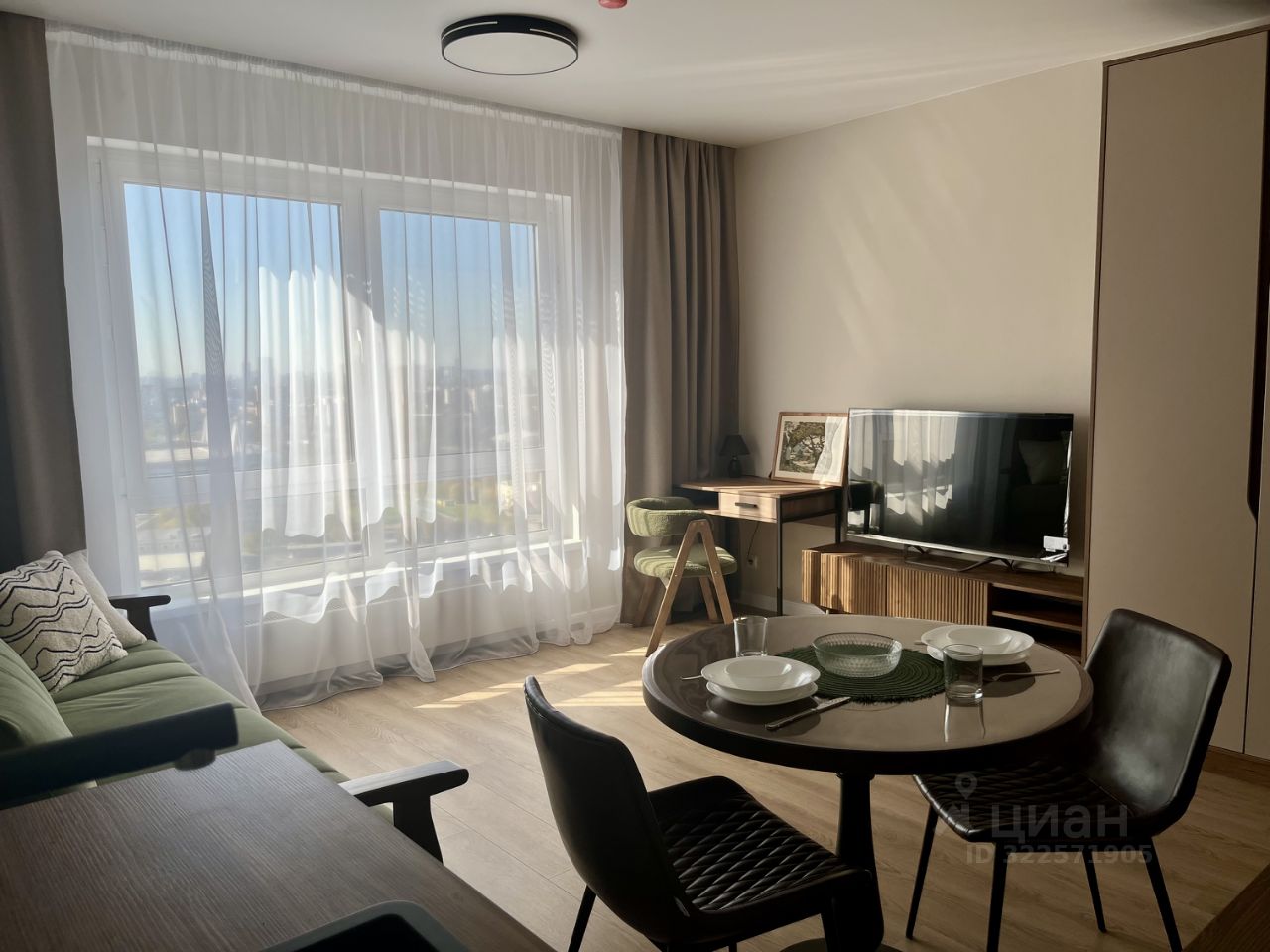 Студия площадью 25.5 кв. м расположена на 25 этаже 33-этажного дома. До метро 7-10 минут пешком.