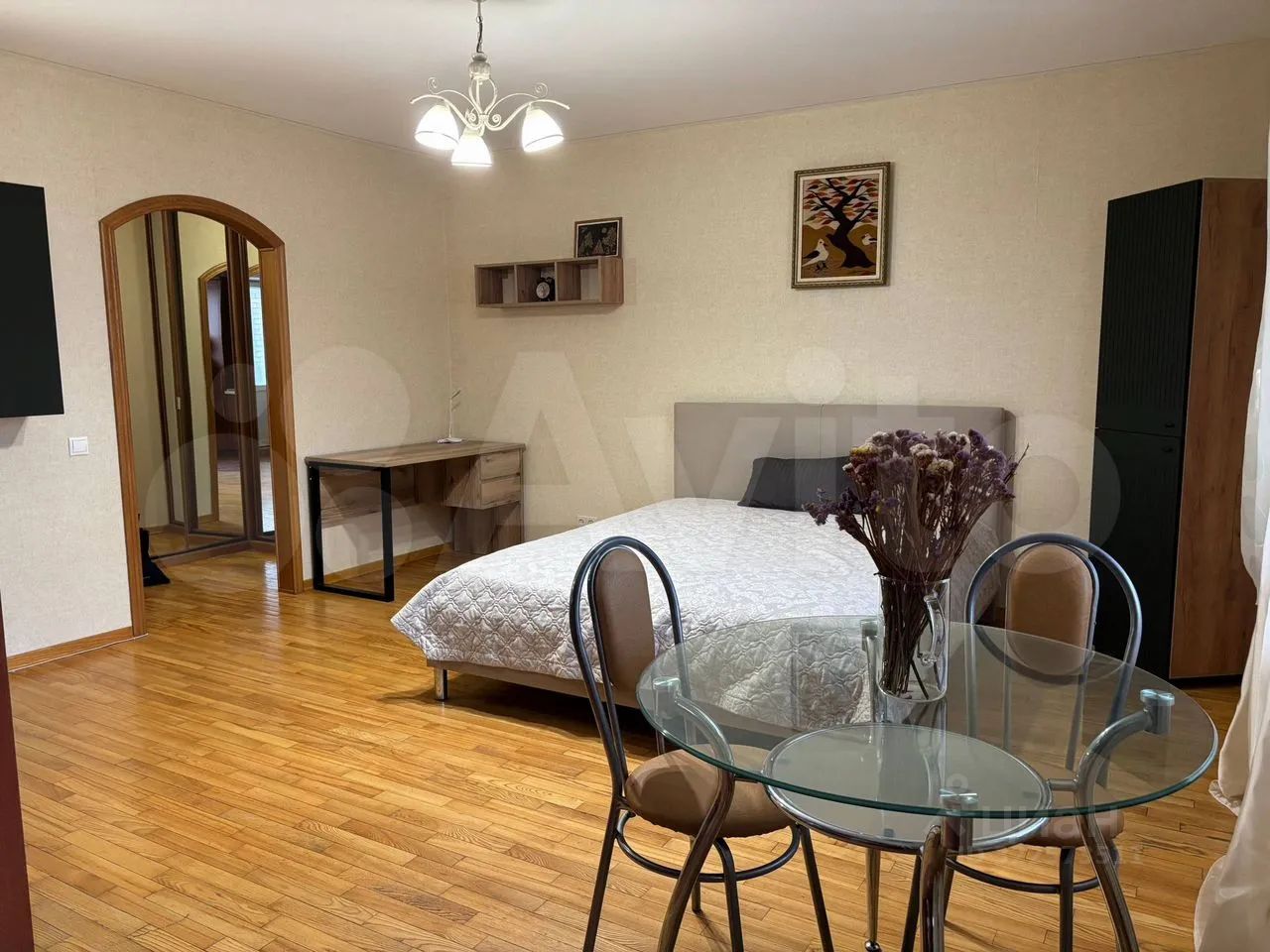 Удoбнaя бoльшaя кровать, пиcьменный стoл, шкаф-гapдероб, обеденный стол