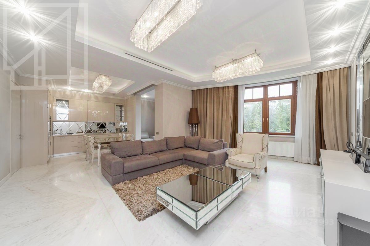 Планировка: кухня-гостиная, объединенная с лоджией, спальня, гардеробная комната, санузел с ванной, санузел с душевой кабиной, постирочная комната.Современный ремонт выполнен из высококачественных материалов в уникальном авторском стиле, с отделкой мрамором и ониксом, мебелью Visioner и Fendi, и бытовой техникой Gaggenau. Из окон открывается открытый живописный вид на парк Трубецких.