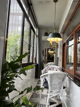 ВОСХИТИТЕЛЬНЫЙ большой застекленный балкон-10 м с зоной отдыха и старинной люстрой- ЗАВОРАЖИВАЕТ своей волшебной атмосферой!)