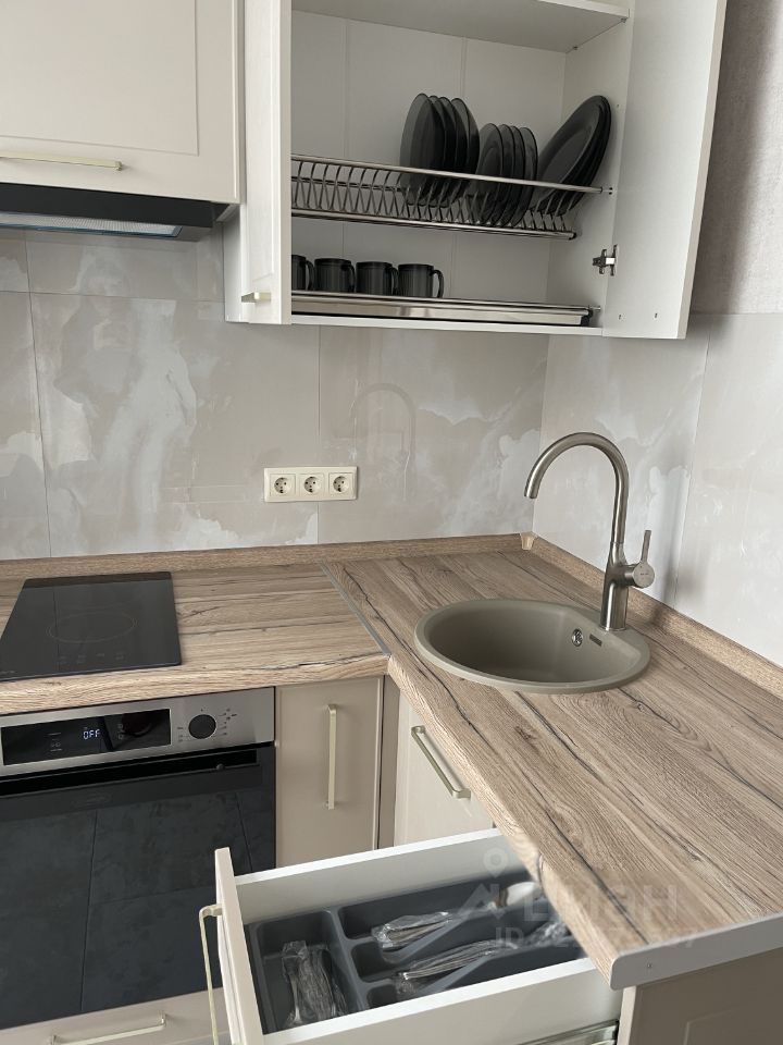 В квартире сделан евроремонт, она полностью готова к комфортному проживанию. Комната обставлена необходимой мебелью, на кухне также есть мебель и бытовая техника: холодильник, телевизор и стиральная машина. Уютная ванная комната оборудована ванной. Окна выходят на улицу, что обеспечивает хорошее естественное освещение.
