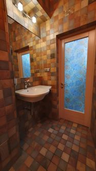 Кухня оборудована кухонным гарнитурой и бытовой техникой BOSCH