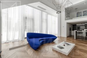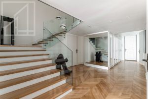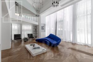 Планировка: 1 этаж кухня-гостиная, спальня со своим санузлом и гардеробной комнатой, домашний кинотеатр, гардеробная, гостевой с/у, постирочная; 2 этаж: гостиная, зона отдыха с домашним кинотеатром, 2 спальни со своими санузлами, гардеробная, гостевой санузел, кладовая. Антресоль: 3 спальни, гардеробная, 2 ванные комнаты. Высота потолков - 3,60 м. В квартире выполнена новая дизайнерская отделка с применением натуральных материалов(дерево, природный камень, мрамор).