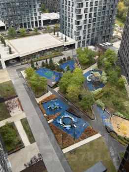 с балкона вид на современный ЖК и ландшафтный дизайн во дворе,