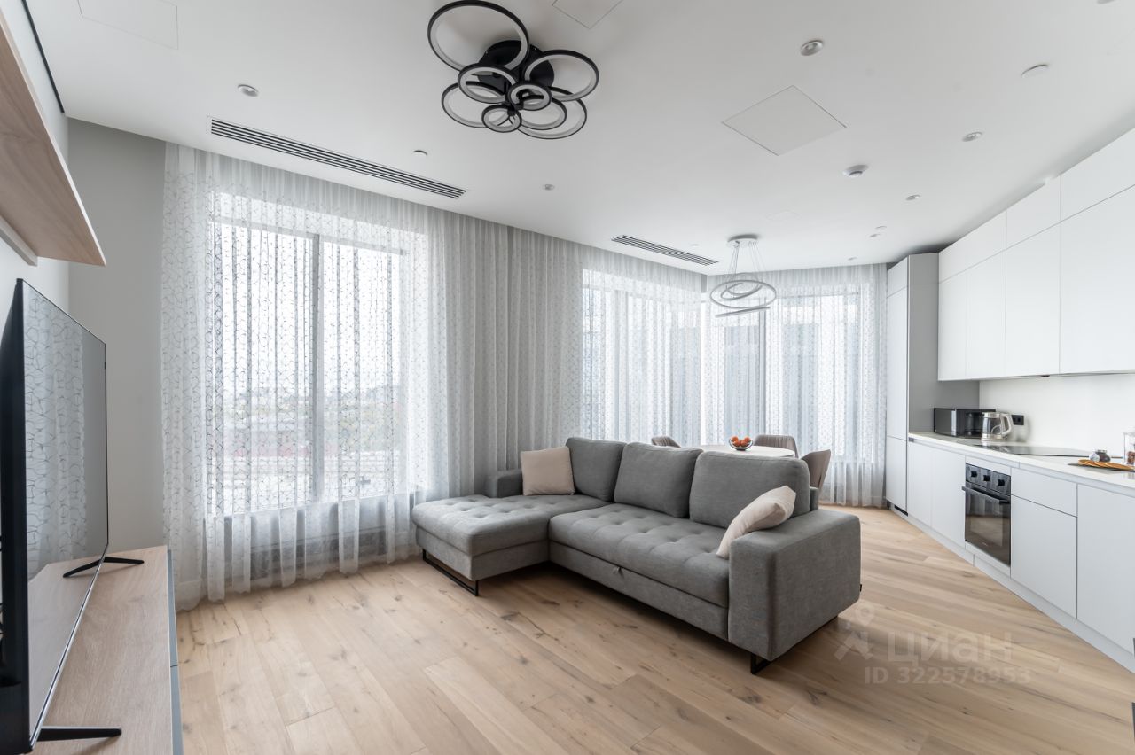 Двухкомнатные апартаменты. Высокие потолки. Панорамные виды на исторический центр Москвы. Функциональная планировка: кухня-гостиная (27 кв.м), отдельная спальня, совм.с/у.