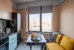 Сдаётся уютная однокомнатная квартира с дизайнерским ремонтом в современном доме 2024 года постройки. Общая площадь квартиры составляет 33 кв. м, включая просторную кухню площадью 12 кв. м. Квартира находится на 3 этаже 27-этажного дома. Из окон открывается шикарный вид Москва реку, что добавляет света и простора.