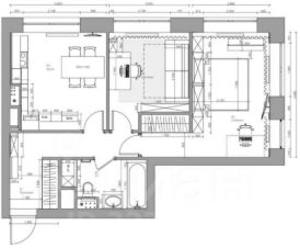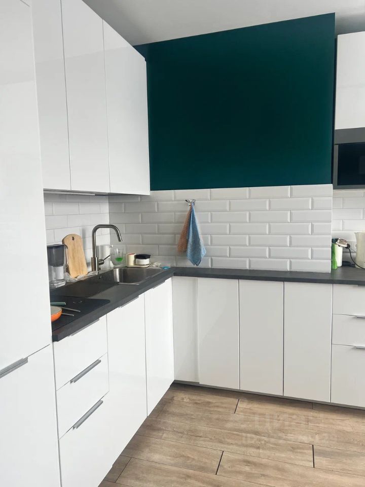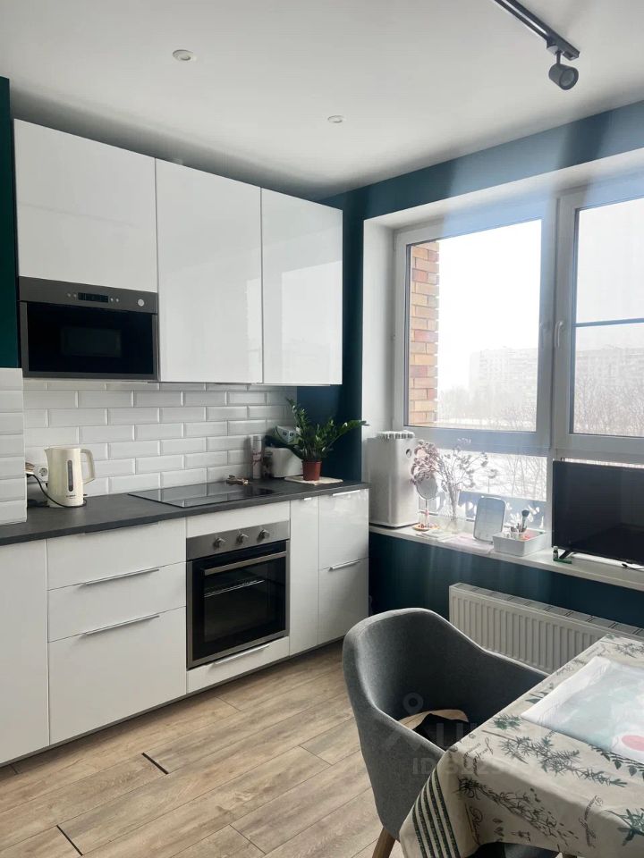 - Просторная кухня около 12м2, совмещенный санузел, спальня ~15м2 и комната поменьше, в которой можно оборудовать рабочую зону. Много встроенных шкафов. Ремонт был закончен в 2022м году