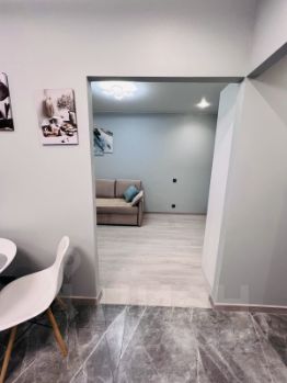 В квартире есть всё необходимое для комфортного проживания. Просторная кухня размером 12 кв. м оборудована современной бытовой техникой: холодильник, посудомоечная машина и стиральная машина. В комнате и на кухне есть мебель, что позволяет сразу же заселиться и начать жить. Санузел совмещённый и оборудован ванной. Окна выходят во двор, поэтому в квартире всегда тихо.
