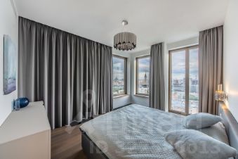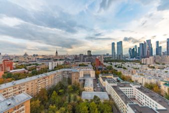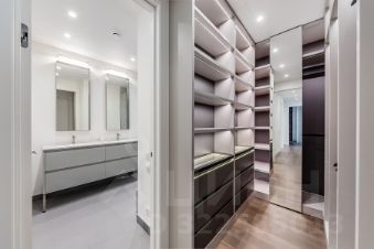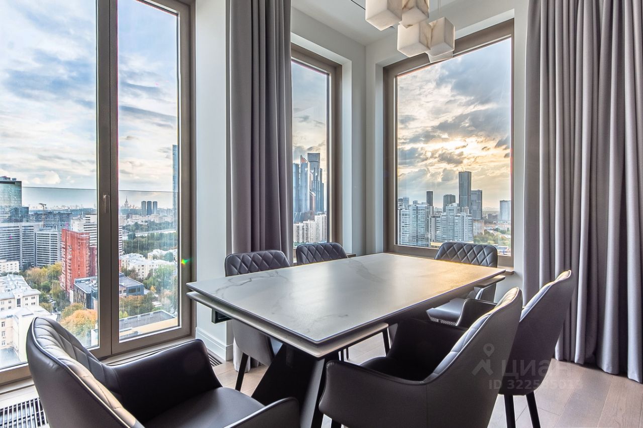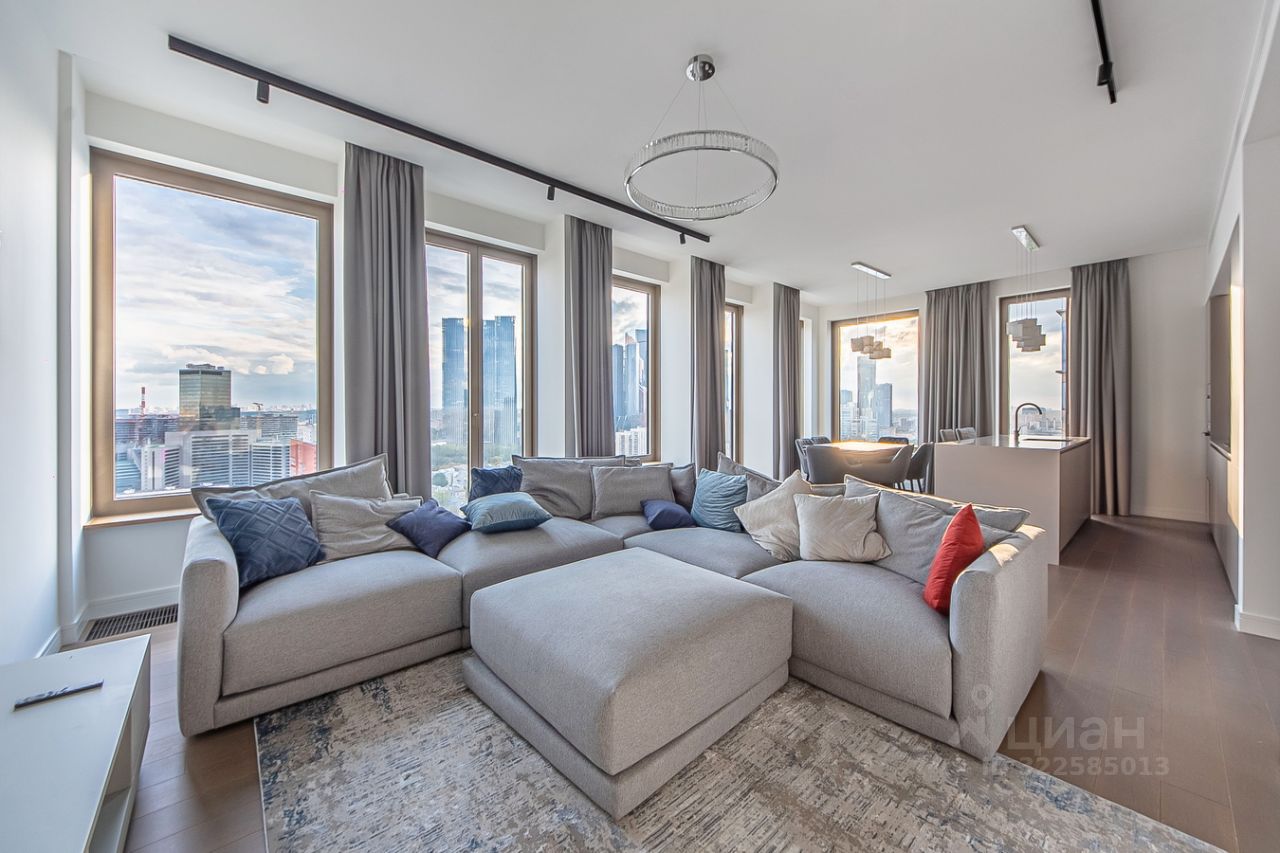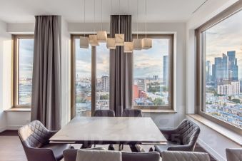 Планировкой предусмотрены: гостиная-кухня-столовая, мастер-блок, вторая спальня с собственным с/у, постирочная и гостевой с/у. Из окон квартиры открываются завораживающие виды на Сити, МГУ, гостиницу Украину, Москва-реку.