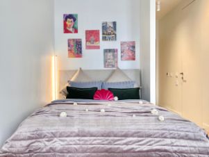Двуспальная кровать, а в случае необходимости разместиться втроем, предусмотрено дополнительное спальное место в виде кресла-кровати.