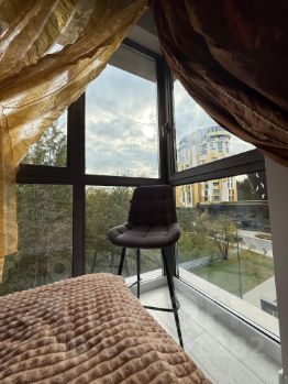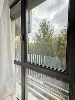 Панорамные окна выходят в тихий двор. Дом расположен радом с зеленым парком.