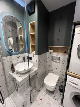 Сдается на длительный срок, шикарная квартира, с современным дизайнерским ремонтом. Высокий первый этаж. Окна на уровне 2 этажа соседнего подъезда. Оборудована всей необходимой техникой. Сплит система (подключается к wi-Fi/алиса) Посудомоечная машина, плита (электро), духовка, микроволновка. Есть Стиральная и сушильная машины Bosch. телевизор Hier. Капсульная кофеварка, чайник, пылесос, утюг, роутер. домашний интернет Билайн (входит в стоимость аренды) Укомплектована необходимой столовой и кухонной посудой. Регулируемый теплый пол во всей квартире. Продуманная эргономика, много мест для хранения, цвет фасадов (темно зеленый)идентичен цвету стен (фото не передает)