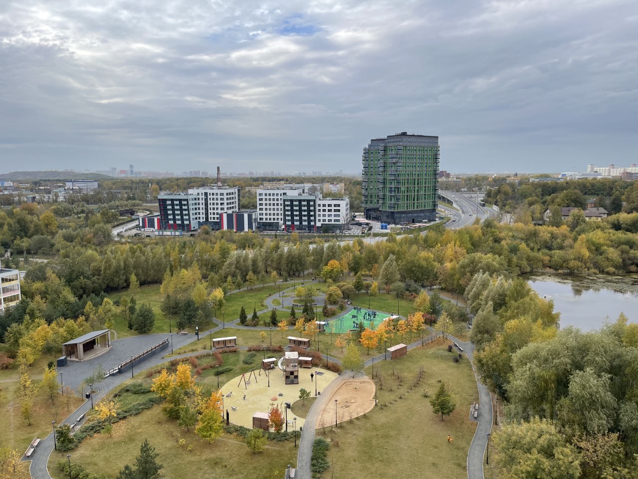 Сдаётся уютная однокомнатная квартира на 14 этаже в современном доме Общая площадь составляет 37 кв. м, жилая — 19 кв. м, площадь кухни — 8 кв. м. Окна выходят на улицу, открывая прекрасный вид на парковую зону с прудами и прогулочными дорожками. В доме есть пассажирский и грузовой лифты.