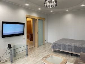 Квартира после евроремонта, полностью готова для комфортного проживания. В комнате двухспальная кровать, 2 мягких кресла, журнальный столик, ТВ, кондиционер. Из комнаты выход на застекленную лоджию. На кухне кухонный гарнитур под единой столешницей со встроенной варочной панелью-стеклокерамикой, духовым шкафом, обеденная группа, 2-х камерный холодильник с функцией автоматической разморозки, СВЧ, ТВ.