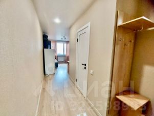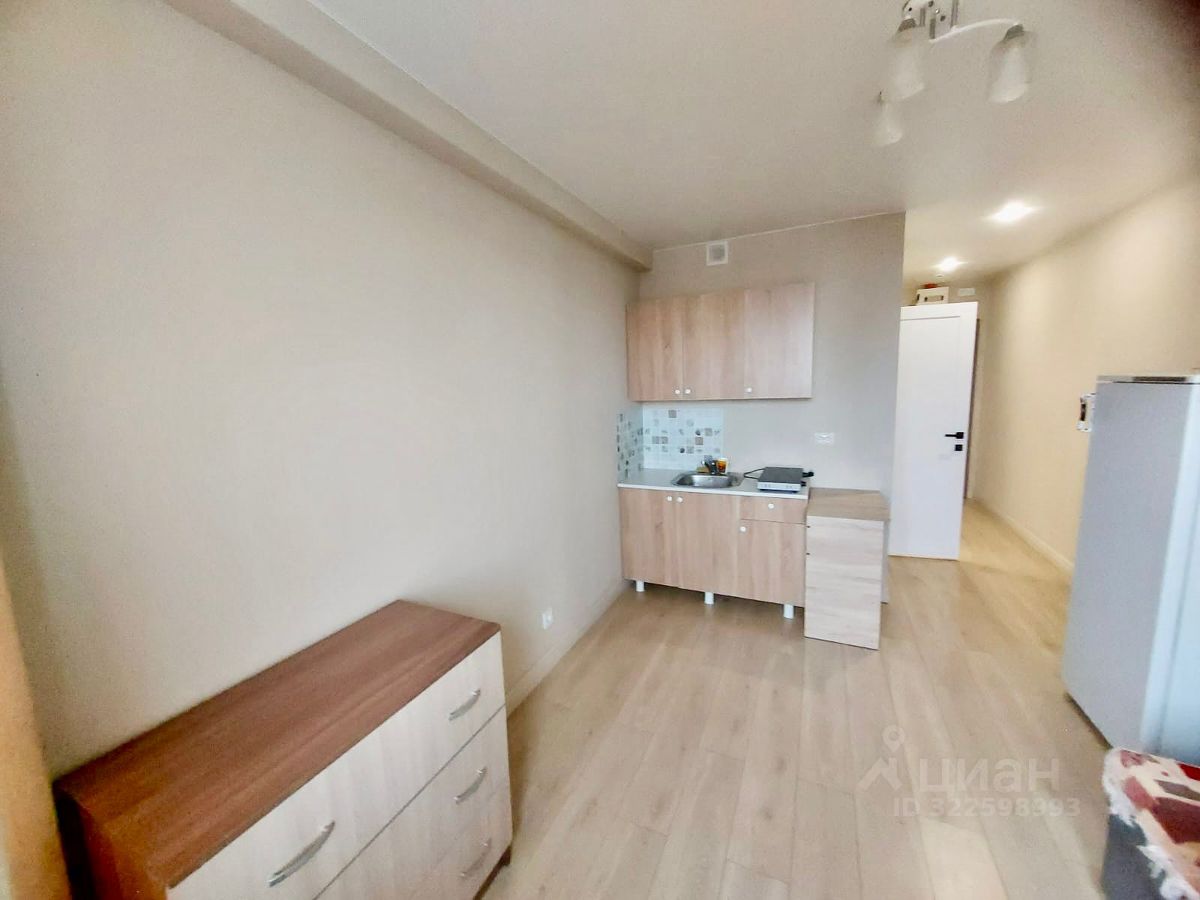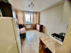 Студия на высоком 8 этаже. Спокойные природные оттенки отделки стен, холодильник, шкаф, диван, мини-кухня. Совмещенный санузел с ванной и стиральной машиной.