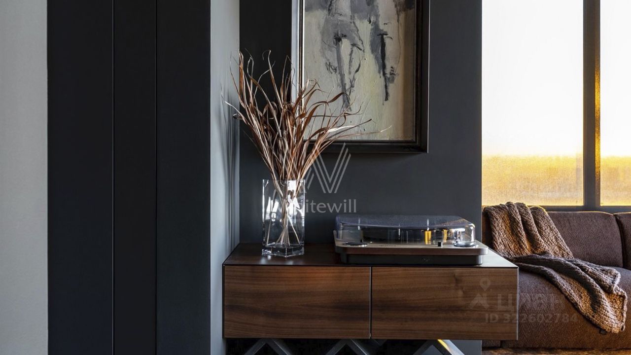 Дизайн-проект квартиры был опубликован в международном журнале Elle Decor. Глубокие оттенки графита и угля придают интерьеру благородство, а винно-терракотовые и коричневые акценты добавляют тепла и уюта. Для вашего комфортного проживания установлена вся необходимая мебель и техника, включая кондиционеры. Планировка включает кухонную зону, лаунж у окна, зону спальни, оформленную стеклянными перегородками и санузел с душевой кабиной.