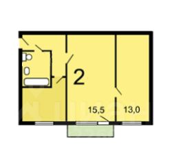 Функциональная планировка: изолированная спальня 13 м² и большая проходная комната 15,5 м² с выходом на балкон. В спальне односпальная кровать, в большой комнате раскладной двухспальный диван.