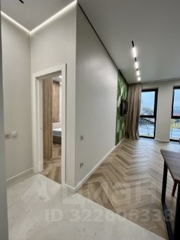 Спальня изолирована, вторая комната - гостиная совмещённая с кухней. Квартира полностью меблирована и укомплектована бытовой техникой. Вся техника и мебель — премиум-класса.