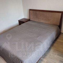 Квартира с евроремонтом, полностью готова к комфортному проживанию. В комнатах и на кухне есть вся необходимая мебель. Из техники — кондиционер, холодильник, телевизор, посудомоечная и стиральная машины. Санузел раздельный, в ванной комнате установлена ванна. Окна выходят во двор, что гарантирует тишину и уют. Кроме того, у вас будет доступ к интернету и телефону.