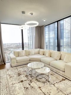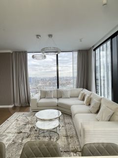 Сдаётся просторная и стильная трёхкомнатная квартира площадью 96,4 кв. м в одном из самых современных жилых комплексов Москвы. Расположена на 40 этаже монолитного дома, построенного в 2023 году. Высокие потолки создают ощущение свободы и простора. До метро "Москва-Сити" всего 6 минут пешком.