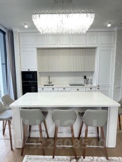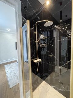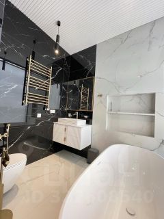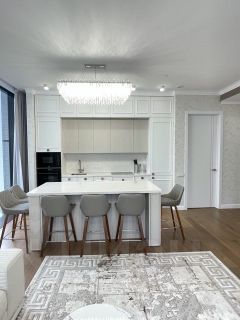 В квартире выполнен дизайнерский ремонт, который подчеркивает её уникальность и современность. В просторной кухне есть вся необходимая мебель и техника: холодильник, посудомоечная машина и стиральная машина. В комнатах также имеется мебель, а для вашего комфорта установлен кондиционер и телевизор. Два совмещённых санузла оборудованы ванной и душевой кабиной.