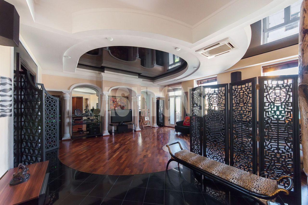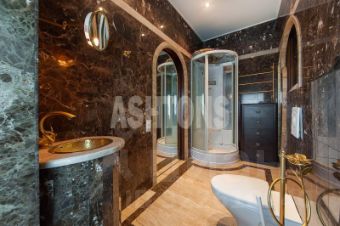 Функциональная круговая планировка квартиры: просторная гостиная, столовая, кухня, спальня, гостевая комната, 1 СУ с окном (2 входа в СУ с разных комнат): джакузи, душевая кабина, 1 большой балкон, 1 застекленная лоджия, холл. Дизайнерская мебель. Встроенная кухня укомплектована всей бытовой техникой Gaggenau. Санузлы оборудованы качественной сантехникой: Villeroy&Boch, Jacuzzi. Дизайнерский проект, высококачественный ремонт с использованием натуральных материалов: красное дерево, мрамор, гранит.