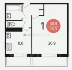 Представляю просторную однокомнатную квартиру общей площадью 38,9 кв.м. на 4-ом этаже 17 этажного дома!