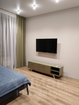 квартира с дизайнерским ремонтом, полностью готова к проживанию. В просторной кухне площадью 16,7 кв. м есть вся необходимая мебель и техника: холодильник, посудомоечная машина и стиральная машина. В комнатах также есть мебель, а для вашего комфорта установлены индивидуальное кондиционерование и телевизоры. Ванная комната оборудована душевой кабиной.