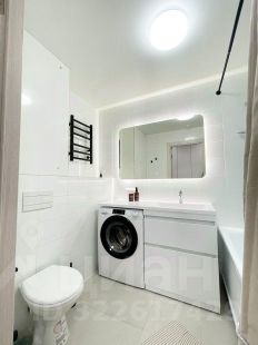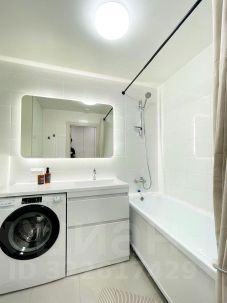 - санузел с встроенными шкафами, стиральной машиной, зеркало с подсветкой