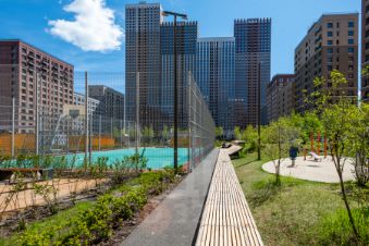 Территория комплекса закрытая, с детскими площадками, тренажерами, озером и пляжной зоной. Концепция ЖК -двор без машин! Имеется подземный паркинг, где можно арендовать м/м.