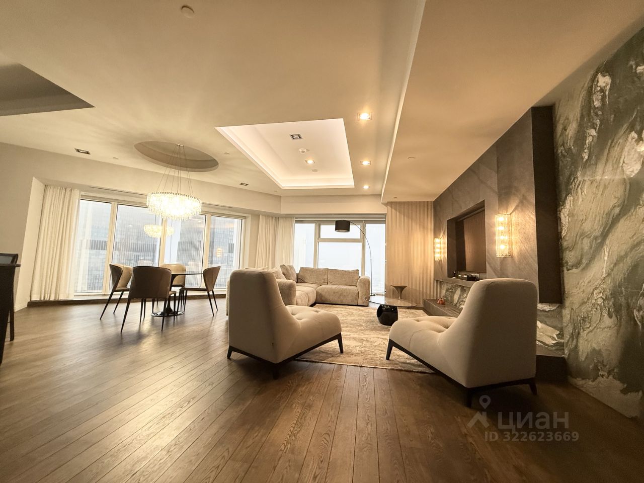 Апартаменты расположены на 44-м этаже монолитного дома, построенного в 2013 году. Общая площадь квартиры составляет 164 кв. м, а высота потолков — 3.2 метра, что создаёт ощущение свободы и комфорта.