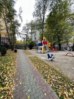 Двор очень зелёный и ухоженный, оборудован детской игровой площадкой. В шаговой доступности вся необходимая инфраструктура: детский сад, школа, поликлиника, почта, магазины и аптеки. До метро всего 5 минут пешком, также рядом есть автобусная остановка.