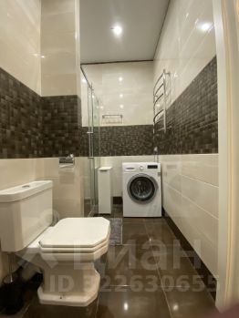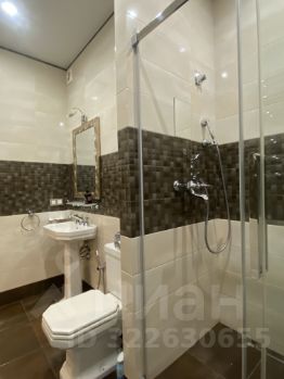 Из техники есть кондиционер, холодильник, посудомоечная и стиральная машины, а также телевизор. Санузел совмещенный, оборудован душевой кабиной.