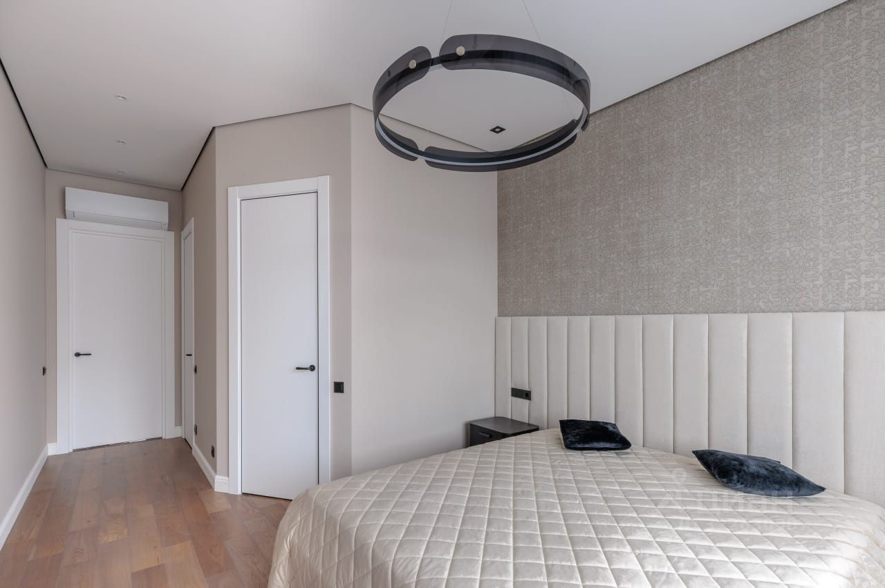 Кухня- гостиная со встроенной мебелью, винным шкафом и всей бытовой техникой.В квартире 3 гардеробной комнаты Мастер- спальня с гардеробной комнатой и санузлом.Вторая спальня, оборудована вместительной гардеробной. При входе в квартиру удобная гардеробная для верхней одежды,а также гостевой санузел с душевой и постирочной зоной, где установлены стиральная и сушильная машины. Обратите внимание, на площадке всего 3 квартиры!!! Район с развитой инфраструктурой, в пешей доступности находятся университеты, гимназии, школы,детские сады,поликлиника,парки,