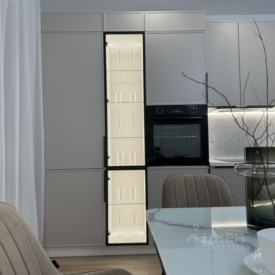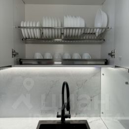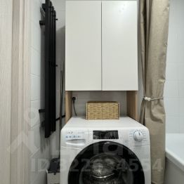 Бытовая техника: встроенный холодильник, посудомоечная машина на 60 см, электрическая варочная панель, вытяжка, духовой шкаф, стиральная машина, электрический чайник и полотенцесушитель, утюг, роутер.